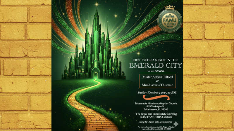 Join Us for a Night In the Emerald City as we crown Mister and Miss FAMU DRS on Sunday, October 5, 2025, at 5:00pm- Tabernacle Missionary Baptist Church.